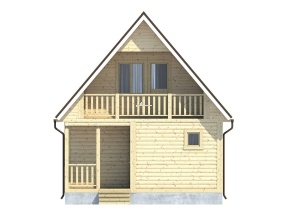 Представленный компанией «Дачи из бруса» проект бани 4 с балконом имеет ряд отличительных особенностей, привлекающих внимание ценителей банных процедур: