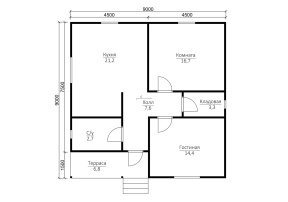 Популярность проекта 110, представляющего собой одноэтажный дом с маленькой террасой размером 9х9 м. и разработанного компанией-производителем «Дачи из бруса», обусловлена несомненной практичностью и комфортностью сооружения в сочетании с самой доступной в Воронеже ценой. К отличительным особенностям здания относятся: