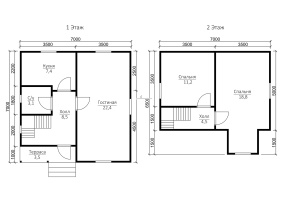 Предлагаем для реализации проект 101 – полутораэтажный дом по каркасной технологии с размером 7х7 м.. Общая площадь всех помещений – 87 кв.м..